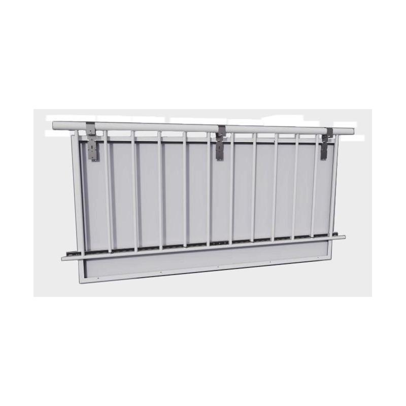 Dieses Set enthält alles was Sie brauchen um ein Modul an einem Balkongeländer oder anderen passenden Geländern zu befestigen. Die mitgelieferten Haken sind speziell für Geländer geeignet. Dieses Set ist geeignet für Solarmodule mit einer maximalen Breite von 166cm und einer Rahmenhöhe von 35mm oder 40mm. Durch hochwertigste korrosionsfreie Materialien aus Edelstahl ist eine sichere und langlebige Montage gewährleistet.